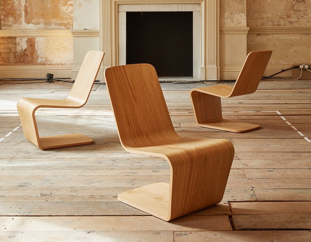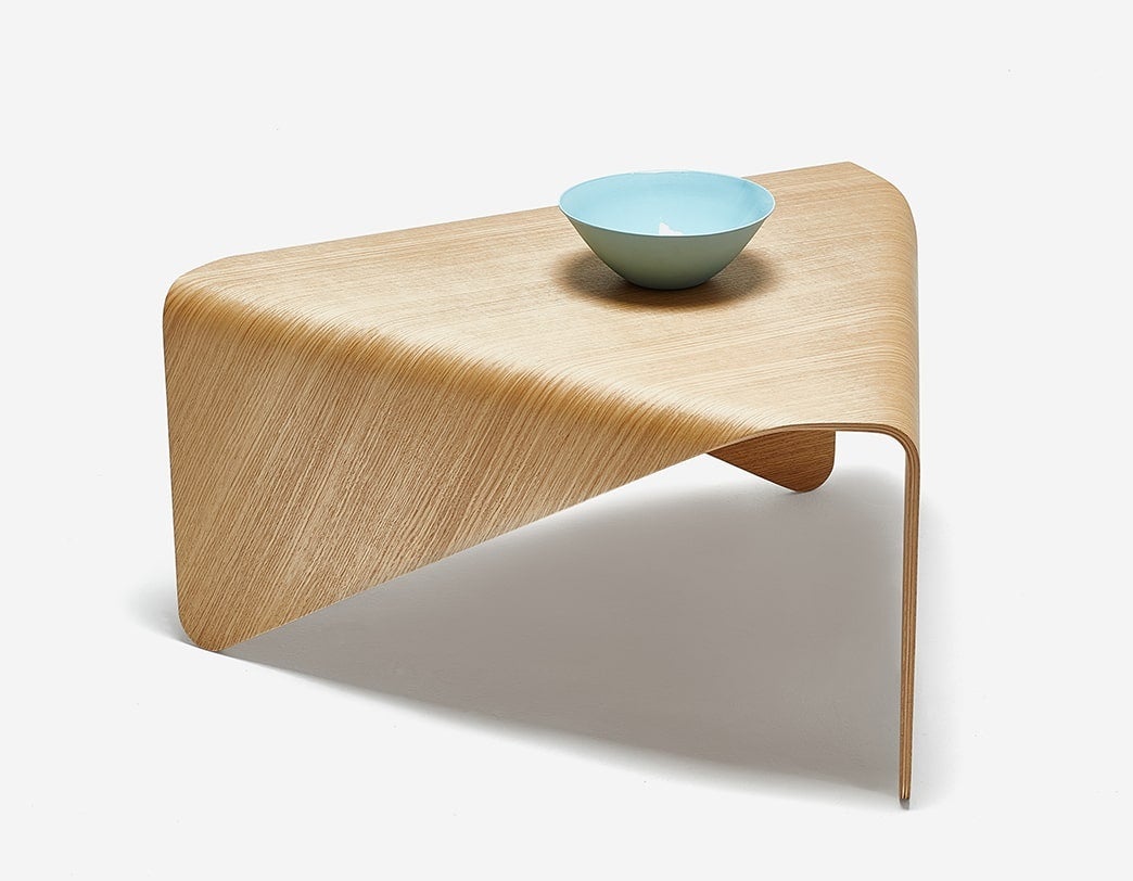 7層から成るプライウッドの1枚板を正三角形に裁断し折り曲げてできるフォルムは薄く軽量ながらも強度があり、プライウッドの特性を活かしたシンプルなデザインです。