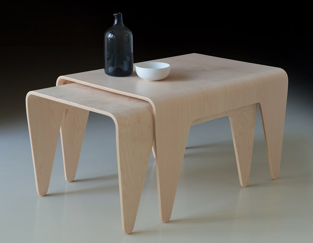 1936年にマルセル・ブロイヤーによりデザインされたネスティングテーブルです。バーチ材の合板を裁断・成形されたシンプルなテーブルです。
