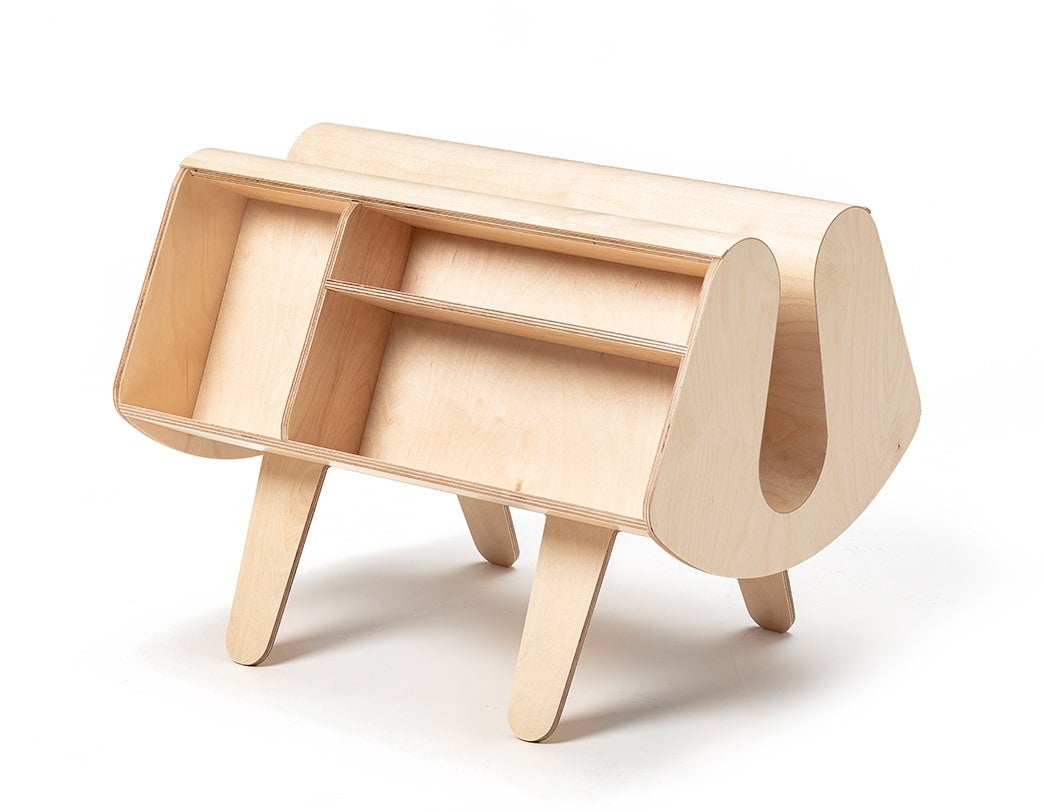 左右の棚と4本の脚がパニア(荷カゴ)を背負うロバのように見えることからドンキーと名付けられ、後にイギリスの出版社“Penguin paperbacks”の本がぴったり収まることからペンギンドンキーに改名されました。